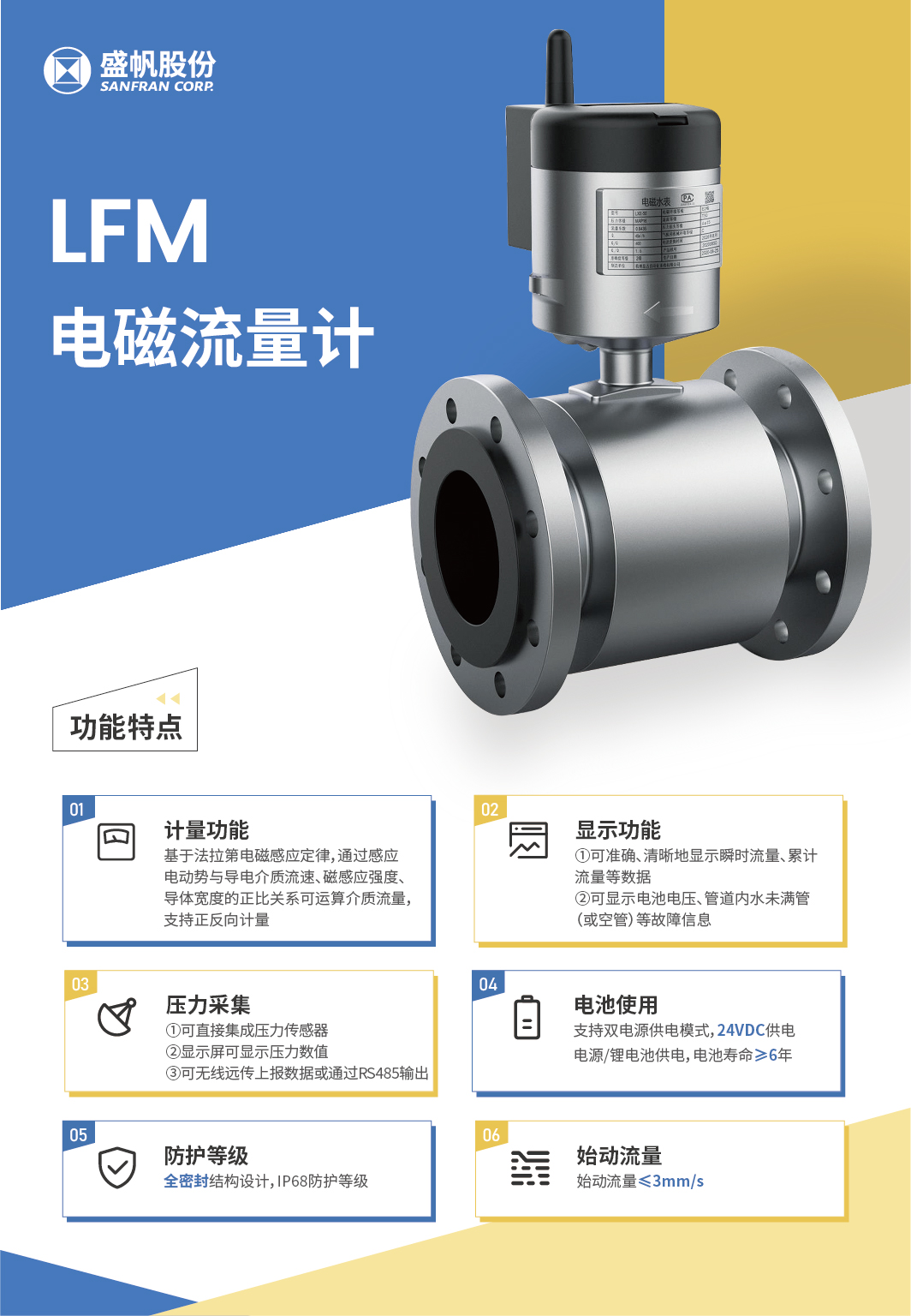 1、基于法拉第电磁感应定律,通过感应电动势与导电介质流速、磁感应强度导体宽度的正比关系可运算介质流量支持正反向计量;