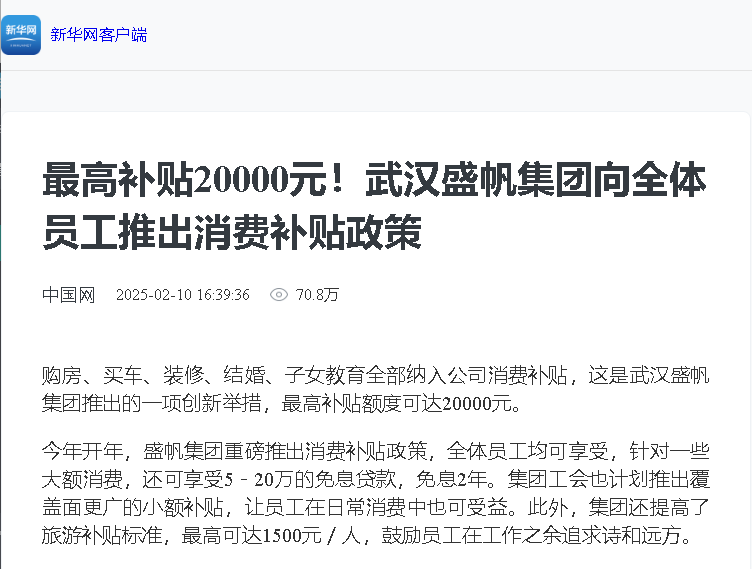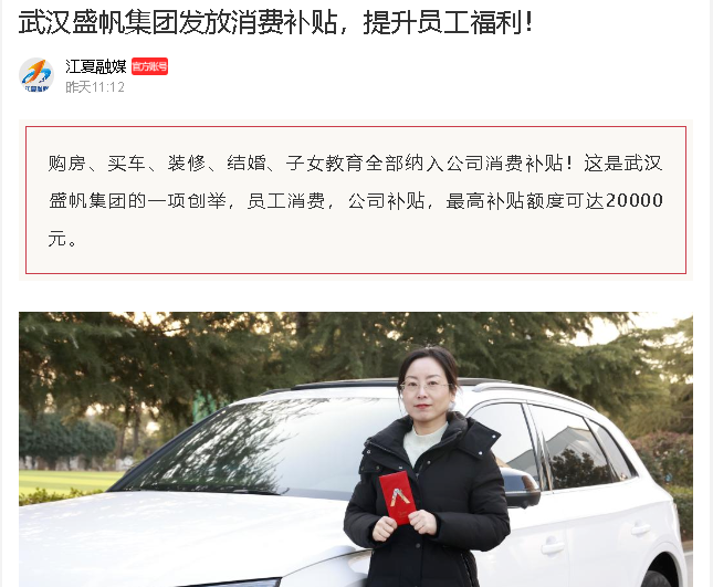 购房、买车、装修、结婚、子女教育全部纳入公司消费补贴,这是武汉HJC黄金城集团推出的一项创新举措,最高补贴额度可达20000元···