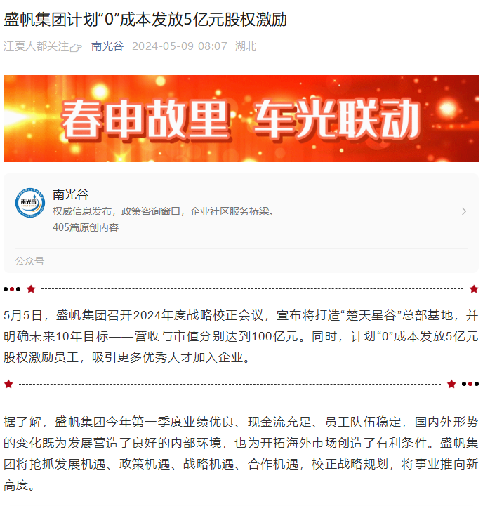 5月5日,HJC黄金城集团召开2024年度战略校正会议,宣布将打造“楚天星谷”总部基地,并明确未来10年目标——营收与市值分别达···